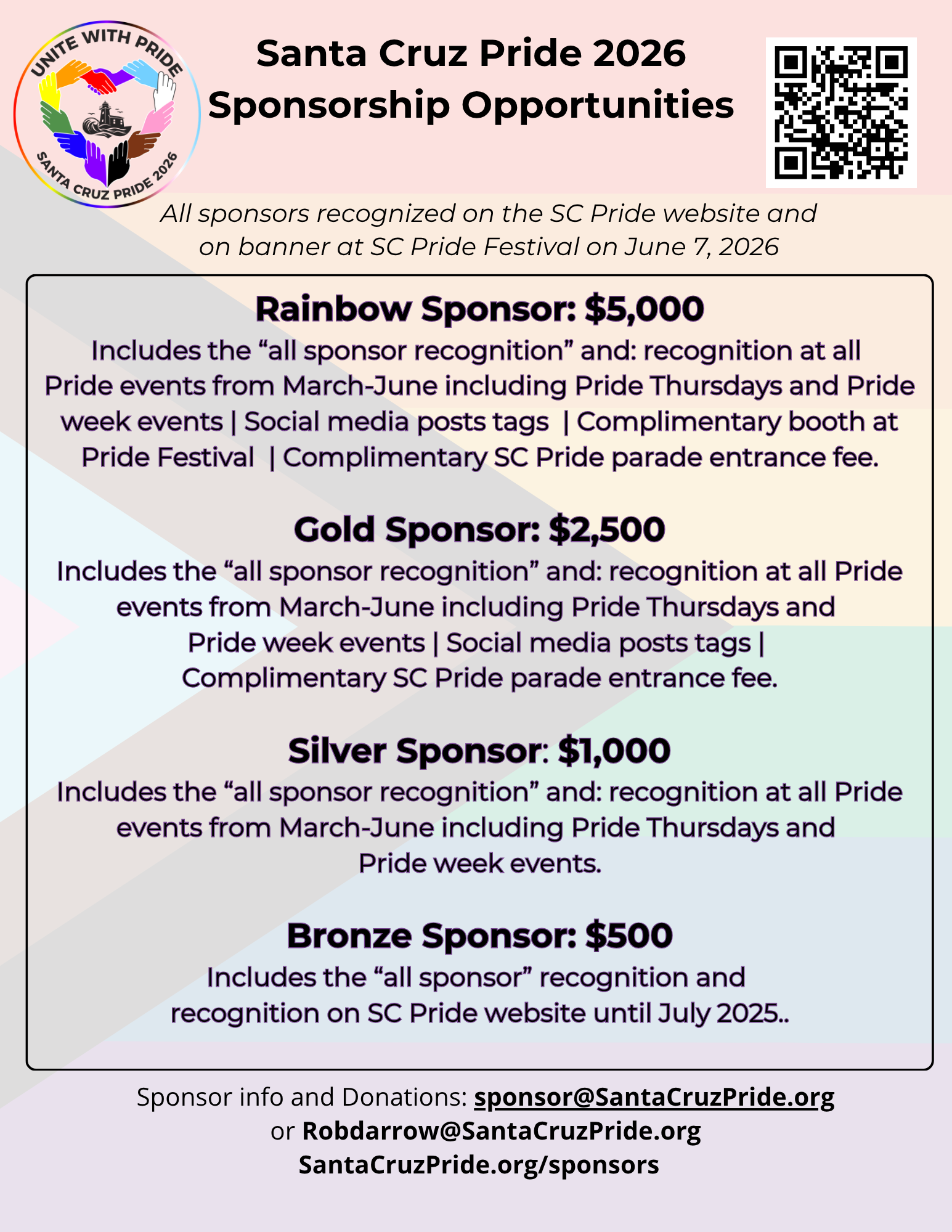These sponsorships fund the many costs associated with our events to keep them free including city permits, marketing, special events, and entertainment. 25% of all sponsorships will help fund the Emerging Queer Student Leaders scholarship fund.